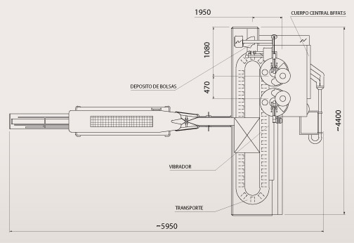 Todas las operaciones de llenado de bolsas, vibración de las mismas y preparación del cuello superior para su posterior cerrado, se efectúan dentro de los correspondientes casilleros. Los paquetes avanzan dentro de los casilleros con el lado ancho hacia adelante.