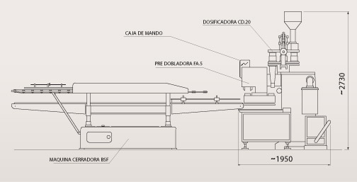 La máquina cerradora BSF/BSH posee su propio motor de accionamiento independiente y también calefacción eléctrica de bajo voltaje para acelerar el secado del adhesivo.