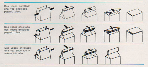En el caso de envases de cierre alto, las bolsas salen de la máquina con el lado angosto hacia adelante, paradas sobre la cinta transportadora de la misma.